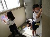教室の壁には,6月2日に行った学区探検の報告レポートが掲示してありました。レポートには,自分で撮った写真を貼り付け,下には発見したことや気づいたことを記入してありました。みんないろいろな発見があったようですね。