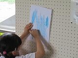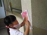 壁や床のでこぼこの模様を,クレヨンやパス(クレパスなど)を使って紙に写し取ります。みんないろいろな場所でおもしろい模様を発見して,おもいおもいの色で紙に写し取っていきます。