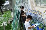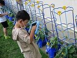 今日の理科は,アサガオの観察です。1年生が植えたアサガオは大きく成長してきています。今日は,端末の写真撮影機能とビデオ撮影機能を使って観察記録をしていきます。