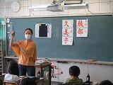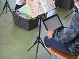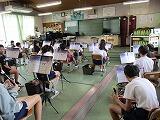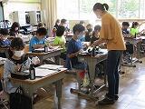 1年生の音楽は,曲にあわせてカスタネットを使ってリズムをうつ練習です。草間先生の合図や歌声にあわせて元気良く拍子をうちます。1人ずつ順番にリズムをうつのは緊張しますね。