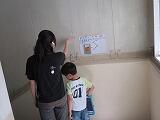 2階へ行く階段の踊り場の壁には,外国語授業支援員の長谷部先生とALTのリチャード先生が作ってくれた掲示物があります。皆さん,願い事を書いて下さいね!
