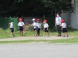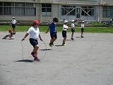 3年生はグラウンドでバトンパスの練習です。タイミングをあわせるのが難しいです。練習,練習!