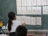 この時間は,担任の松葉先生に外国語授業支援員の長谷部先生,ALTのリチャード先生を加え,3人で授業を進めています。今日は音楽に合わせてアルファベットの練習です。さあ,リズムに合わせて大きな声で!