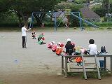 雨は3時間目にはやんで,時折太陽が顔をのぞかせるような天気となりました。曇ってはいましたが,昼休みには一部を除きグラウンドが使えるようになりました。手賀西小のグラウンドの水はけの良さには驚かされます。いつもよりは人数は少ないですが,子ども達は元気に走り回っています。