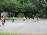 雨は3時間目にはやんで,時折太陽が顔をのぞかせるような天気となりました。曇ってはいましたが,昼休みには一部を除きグラウンドが使えるようになりました。手賀西小のグラウンドの水はけの良さには驚かされます。いつもよりは人数は少ないですが,子ども達は元気に走り回っています。