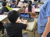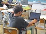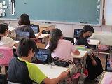 給食を食べ終わった人が端末を開いてタイピングをしています。これは,学級の友だちとチャットで会話をしているのだそうです。
