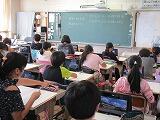 今日の算数は,わり算の筆算の学習です。仮の商を立てて筆算をします。うまくいかないときは?ここで,自分の考えをじっくりとノートに書いていきます。担任の松葉先生が児童の机をまわりながら,「いいね!」,「理由は?」「割る数はどうなっている?」等の声かけをして,考えをまとめるアドバイスをしていきます。さあ,自分の考えを発表しましょう!