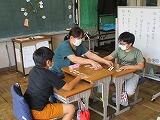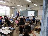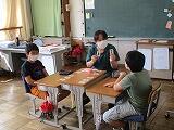 3年生の英語は,「友だちの好きなものを聞いてみよう,自分の好きなものを話してみよう!」です。担任の高坂先生と外国語授業支援員の長谷部先生のやり取りを参考にして,フルーツ,色,スポーツなど,グループで聞いたり話したりして活動しました。
