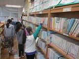 4年生は図書室で読書活動です。各自の読書でビンゴの用紙を見ながら,様々なジャンルの本を探して,借りています。「外国人が著者の本はどこだろう?」,「この著者の本は?」など,友だちと相談しながら書架の表示を探していきます。ビンゴが1列できて,しおりをもらった児童もいました。いろいろなジャンルの本を読んでみてください!
