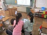6年生の図工(10/26に実施)は,コマ撮りアニメの中間発表会です。グループで協力して作りあげた作品を鑑賞します。作り手側は,自分たちの作品の「見どころ」を伝え,いよいよ上映です。見る側は,「見どころ」を中心に,「良いところ」や「改善すべきところ」等を話し合います。