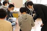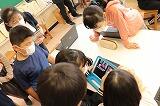 2年生の国語は,「さけが大きくなるまで」の学習をしています。今日は,さけが大きくなる様子を,端末を使ってまとめていきます。まず,6枚の写真を順番に並べ替えていきます。順番どおりになっているかをグループで確認します。次は,説明文です。説明には,「時」「場所」「大きさや様子をあらわす言葉」を使ってまとめます。端末の扱いもスムーズですね!