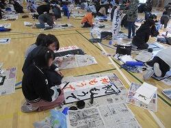 字の上達を願い、新年のはじめに書を書く書初め、席書会。富勢小学校では毎年、県立柏高校の書道部の先生が来校してくださり、上手な字のポイントを教えてくださいます。