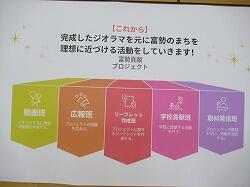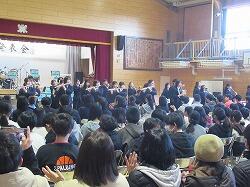 西小は6年生のリーコーダーと高学年の合唱。富小は、オープニングにねぶた囃子太鼓クラブの演奏と、6年生が学校を超えて合同で音楽の時間に習った合唱を演奏、中学校は、吹奏楽の演奏。そして、柏高校も参加をして、吹奏楽・合唱・軽音楽とバラエティーに富んだ内容で、音楽を通じて一つになりました。さらに、富小6年生が総合で取り組んでいる、富勢地域の理想の姿をジオラマで表現した作品を、演奏と演奏の間でプレゼンさせてもらいまいた。