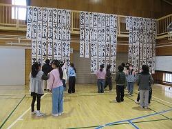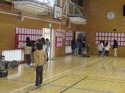 先週の書初めで書いた作品が、体育館に飾られています。一生懸命にがんばった作品には金賞の札がついています。金賞を見て喜び子、もう少しだったと悔しく思う子、がんばった体験は必ずどこかで生きてきます。