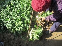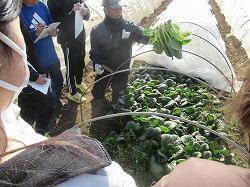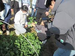 島田さんには小松菜の収穫を、大塚さんにはカブの収穫を学び、いよいよ実際の作業です。