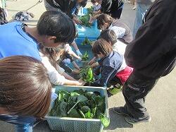 収穫した野菜は学校にもってきて、洗います。冷たい水、ジェット噴射で土を落とすカブ・・・ほんの一角を収穫しただけでしたが、ここまで1時間半近くかかりました。