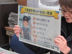 オンラインで、生活安全課の二人の警察官の方から、不審者に出会った時の対応について、日頃子から心掛けておく「はちみつじまん」を中心に、お話をいただきました。学校外で不審者に出会うことが多いです。今日の訓練を思い出して、不審者と遭遇しないようにしていき、実際にそういう場面に会った時は、自分の命を守る行動ができるようにしていきましょう。