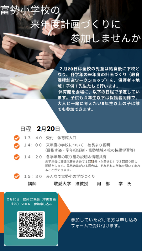 *次回 2月20日(金)教育ミニ集会のお知らせ*