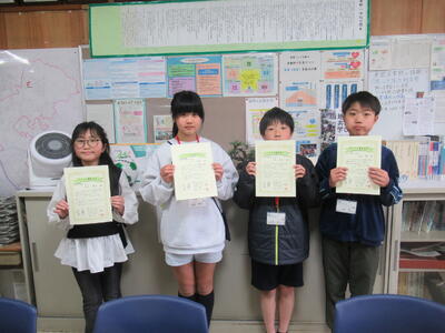 今年度富勢小学校からは4人の子どもたちが子ども司書講座を受けて、実地体験などを経て認定証の交付を今日受けました。