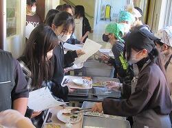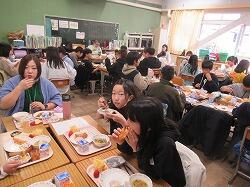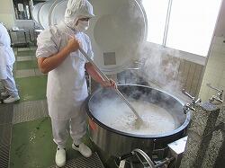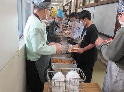 今日で今年度の給食は最後です。6年生の卒業を祝って「赤飯」を給食室で炊きました。昔から日本で食べられてきた赤飯は「しあわせごはん」です。お祝いのお赤飯、豆が苦手な人も食べてくれていました。