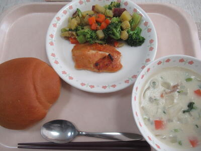 牛乳ロール タンドリーチキン ブロッコリーサラダ かぶのポタージュスープ