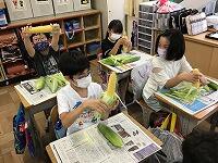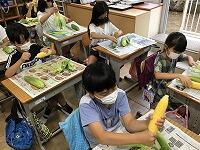 朝の時間に、今日の給食で食べるとうもろこしの皮むきをしました。手をしっかりと洗い、栄養教諭からむき方を教わって、ていねいにむいていました。ひげの数が実の数と同じということを知って、ひげをとる手つきが優しくなる、かわいらしい3年生でした。