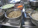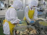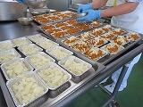 今日のメインのおかずは「肉じゃが」です。700食分ほどを作るのに約50Kgのじゃが芋と20Kgのぶた肉を使いました。それでも「もっと食べたい」とみんなが好きなメニューですね。今日のふりかけにはみそ汁のだしをとった後の「かつお節」と「こんぶ」を使い、ちりめんじゃことごまを加えて作った栄養たっぷりのふりかけです。ごはんは柏市のお米で、食が進みました。
