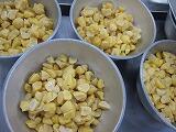 北海道でとれたかぼちゃをつぶして、一つずつ丸め、衣をつけて揚げました。甘いかぼちゃでおいしく仕上がりました。