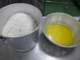 バターは湯せんで溶かし、重曹はぬるま湯で溶かします。