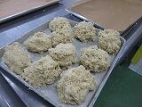一人分ずつ丸めてオーブンで焼くと、焼きたてはやわらか、大きなビスケットの出来上がりです。