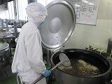 煮魚は給食室の大きな釜で煮るので味がしっかりしみています。今日はごま風味のみそ味です。