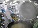 「大学芋」は乱切りのさつま芋を油で揚げて、砂糖・しょうゆ・お酢で作ったタレと黒ごまをからませて作りました。外はカリッと中はふっくら、今が旬、千葉県産のさつま芋を使い、甘みがおいしい大学芋に仕上がりました。