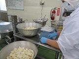 豆腐が崩れないように700人分を大きなお釜、2釜で作りました。