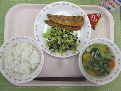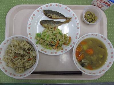 ★秋の給食らしい。さんま、かぼちゃ、えのきだけ …特にサンマご飯は絶品。完食の子も多くいました。