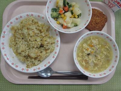 牛乳・ツナピラフ・ひじきいり鉄分サラダ・チーズスープ・オートミールビスケット