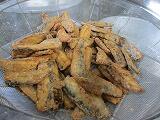 ししゃものソースはにんじん、たまねぎ、ピーマン、りんごのすりおろしなどを煮込んでとうがらしで少し味をひきしめました。揚げたししゃもにソースがからみ、食べやすく仕上がりました。