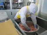 今日は給食室でミートボールを作りました。一人2個以上食べられるように、重さをはかって一つずつ丸めて全部で1500個ほどのミートボールを作り、オーブンで焼いてトマト味のシチューにいれました。冬野菜の代表、ブロッコリーも茎の部分は角切りにして、栄養たっぷりのシチューを作ってくれました。