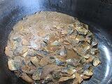 さばは大根おろしをいれたタレを煮立て、さばを加えて大きな釜で煮込みました。