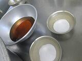 バターは湯せんで溶かし、重曹はぬるま湯で溶かします。
