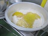 米粉はお米を粉にしたものです。最近では米粉を使ったパンやお菓子などもたくさんあります。今日は地元柏市の農協が寄付してくれた米粉も使い、給食室でりんごたっぷりの米粉ケーキを焼きました。もちもちとして、小麦粉で作ったケーキとは少し違った味わいです。