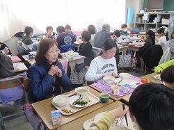5年生の直売会に向けて、今日は収穫をしています。ボランティアの方々も一緒に給食をいただきました。