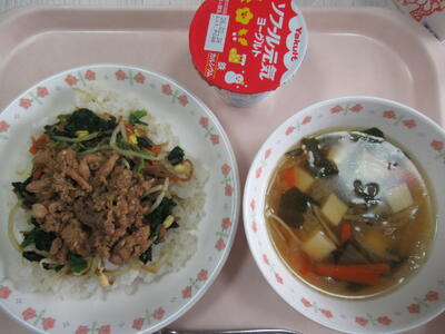 2月12日 ビビンバ 豆腐のスープ ヨーグルト