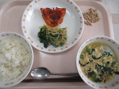 焼きシシャモはよく給食に出てくるが、今日は玉ねぎソースがかかっているところが新しい。玉ねぎやニンニクの味もする醤油タレソースで、シシャモに洋風の味付けである。野菜のアーモンド和えは、少し甘味のあるドレッシングでアーモンドを砕いたナッツも一緒に入り、野菜をおいしく彩っている。いもの子汁は、里芋がたっぷりと入った、今の時期にふさわしいお汁で、温かくおいしくいただいた。カリカリ大豆は油でカラット揚げられて、大豆と青のりと塩が後を引く味を作り出している。