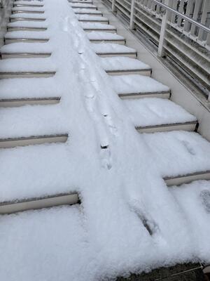9日朝は歩道橋を気を付けて渡ってください。除雪はしました。