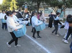 リヤカーで学校まで運ぶのは、地域のボランティアの方にお願いしました。