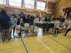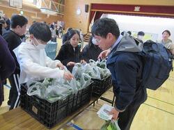 今日はALTの先生も買いに来てくださり、英語の授業で勉強した英語を使っての会話でがんばりました。試食のカブの浅漬けも皆さんに食べていただき好評です。
