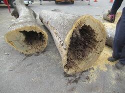 校庭を見回っていた時に、木の表面から内側が見えるように皮がはげ落ちているのを見つけ、樹木診断士に診てもらったところ、内部がかなり虫に食われてしまっているとのこと。