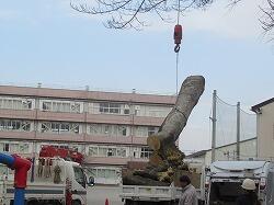 長い時間、校庭を見守ってくれていた木です。印西の処理場で樹木チップに加工されて、次の役目を担ってくれるようです。 長い間富勢の子供たちを見守ってくださり、ありがとうございました。