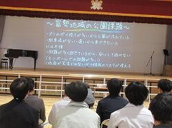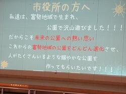 今までも、富勢3校で交流したり、保護者向けにプレゼンをしたりしましたが、今日はそこで練り上げた内容を、市役所の関係部署の方々と地域の方々に来ていただき、主張させていただきました。