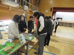 動画とプレゼンテーションを見ていただいた後には、それぞれのプロジェクトが作成した30のジオラマを見ていただき、意見交換や質問に答えたりして、自分たちの「熱い想い」を伝えることができました。